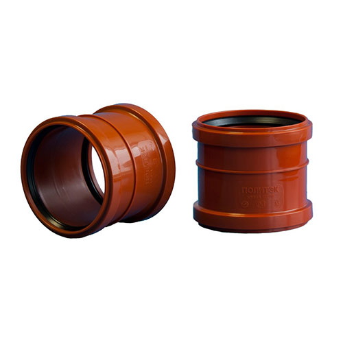 В отличии от соединительной муфты не имеет упорного бортика внутри, что позволяет легко надеть ее на заменяемую часть трубы. Оба конца ремонтной муфты снабжены резиновыми уплотнительными кольцами