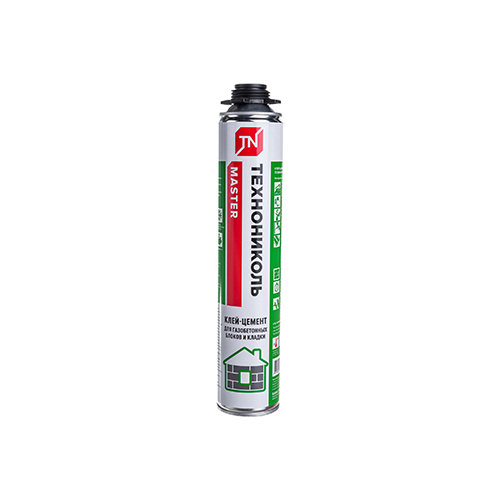 Клей-Цемент ТЕХНОНИКОЛЬ MASTER – это готовый к применению однокомпонентный профессиональный полиуретановый клей в аэрозольной упаковке для устройства кладки перегородок из газобетонных, керамических и других блоков.