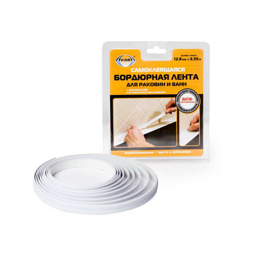Лента бордюрная клейкая для ванн белая 12,8х3,35 AVIORA, 1/20
