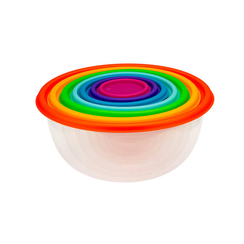 Миска пластмассовая круглая 0,08л, 0,2л, 0,5л, 1,0л, 2,0л, 3,1л, 5,0л набор РАДУГА 7шт, микс разноц, 1/9