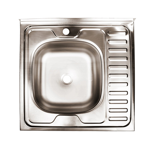 Мойка нерж. квадрат 60*60см 0,4мм лев. вып 1 1/2, глуб чаши 16см, без крепления и сифона MIXLINE, 1/20
