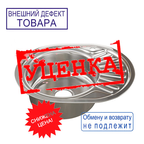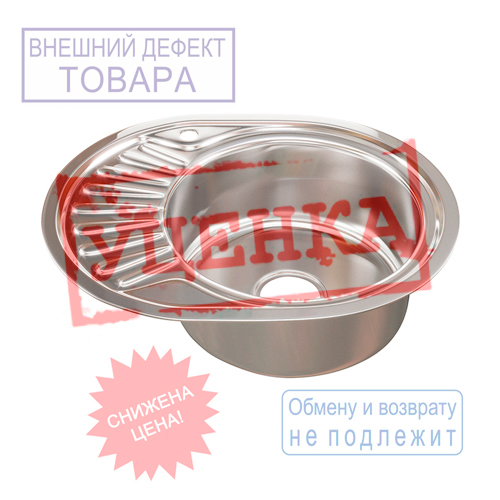 Мойка нерж. овал 45*57см 0,6мм прав вып 3 1/2, гл. чаши 16см, с сифоном MIXLINE УЦЕНКА, вмятины, царапины