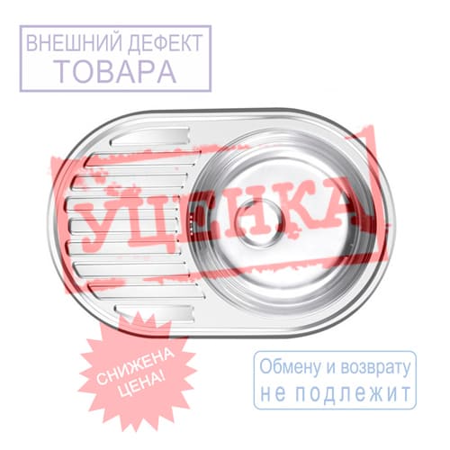 Мойка нерж. овал 50*77см 0,6мм лев вып 3 1/2, глуб чаши 16см, с сифоном, с креплением MIXLINE УЦЕНКА, вмятины, царапины