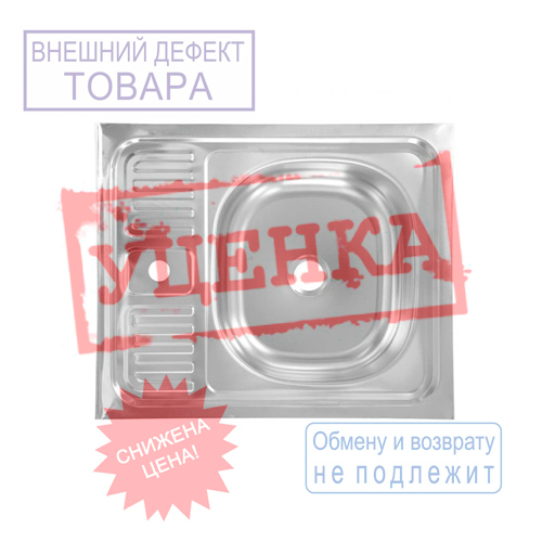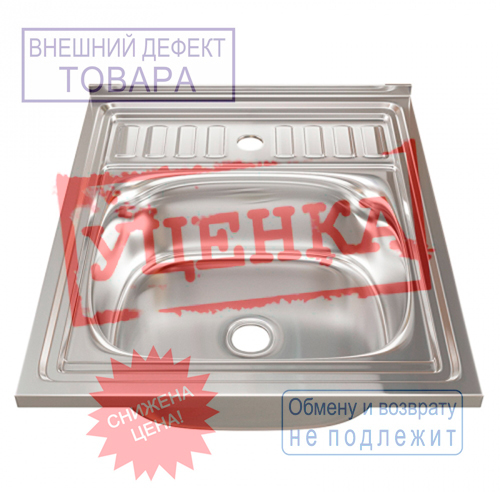 Мойка нерж. прямоуг 60*50см 0,4мм правая накладная, глуб. чаши 12см, УЦЕНКА, вмятины, царапины
