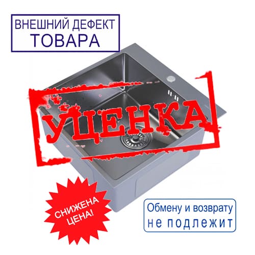 Мойка нерж. квадрат 50*50см 0,4мм вып 1 1/2, глуб чаши 16см, MIXLINE УЦЕНКА, вмятины, царапины