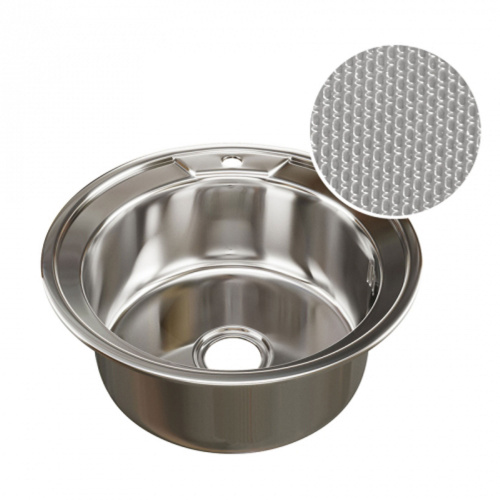 Мойка нерж. круг 49см 0,8мм вып 3 1/2, глуб чаши 18см, с сифоном, без гофры декор MIXLINE, 1/15