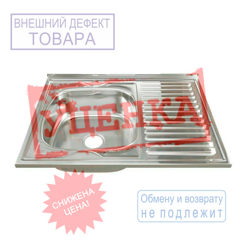 Мойка нерж. прямоуг 60*80см 0,4мм левая накладная, глуб. чаши 12см, УЦЕНКА, вмятина