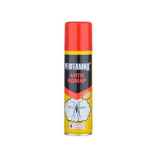 Аэрозоль Reftamid «Антикомар» обеспечит вам надёжную защиту от кровососущих насекомых. Содержит высокоэффективный действующий компонент, сохраняет своё действие в течение 4 часов.