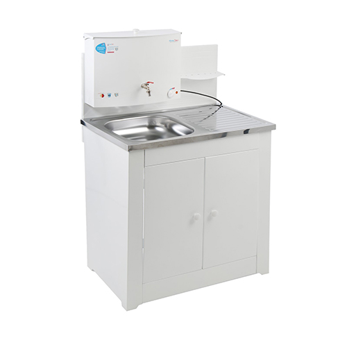 Умывальник с ЭВН Каскад белый с полочками 15л, пласт. мойка, УЦЕНКА, после ремонта